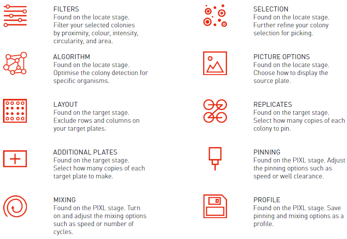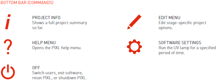 Full details about the software and icons can be found in the PIXL User Guide supplied with your ROTOR. Below are some extracts from the manual.